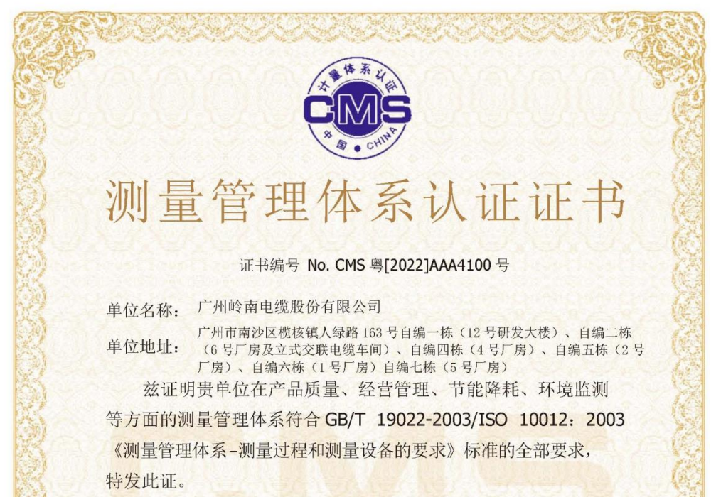 近日,智光電氣控股公司廣州嶺南電纜股份有限公司(以下簡稱“嶺南電纜”)測量管理體系順利通過認證審核,榮獲AAA級“測量管理體系認證證書”,標志著嶺南電纜在產(chǎn)品質(zhì)量、經(jīng)營管理、節(jié)能降耗、環(huán)境監(jiān)測等方面的...