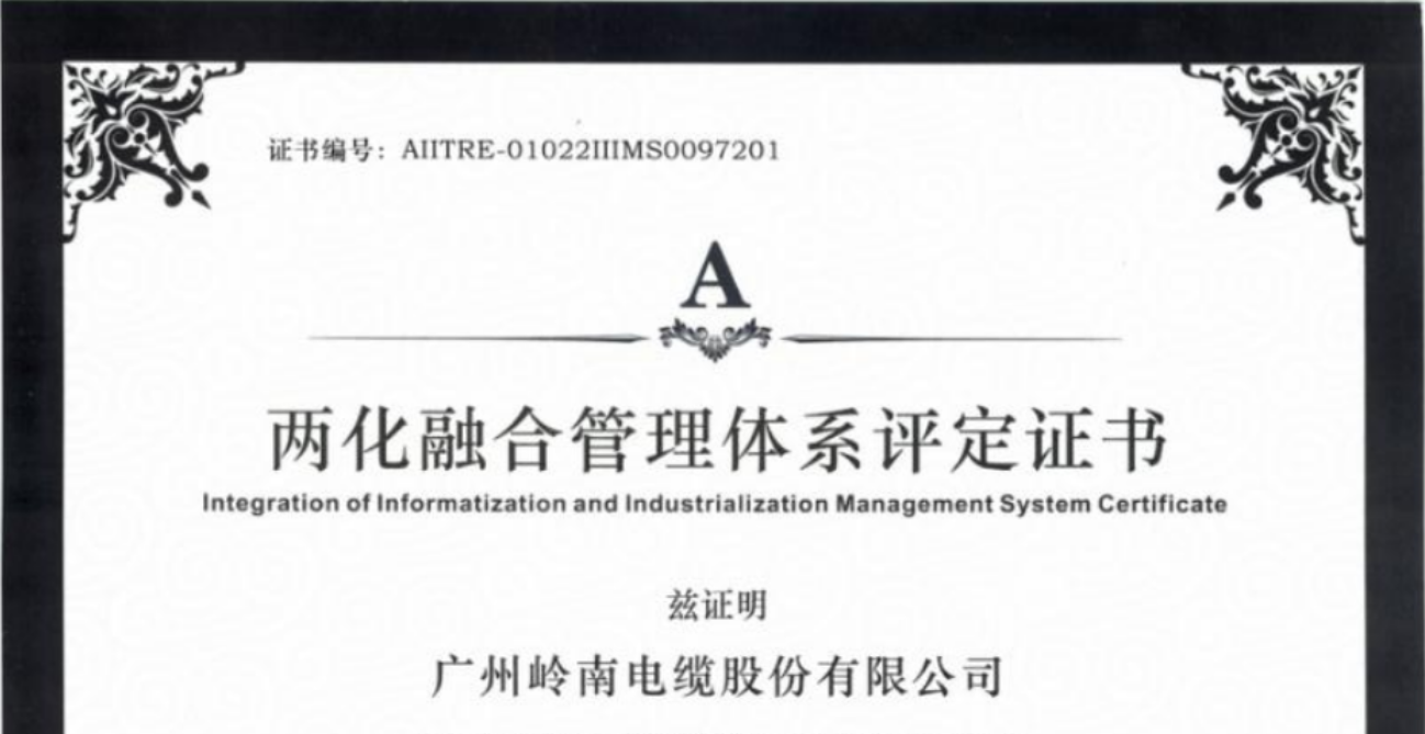 近日,智光電氣控股公司廣州嶺南電纜股份有限公司(以下簡稱“嶺南電纜”)順利通過國家工業(yè)和信息化部《信息化和工業(yè)化融合管理體系 要求》(GB/T 23001-2017)及《信息化和工業(yè)化融合管理體系 新型能力分級要...