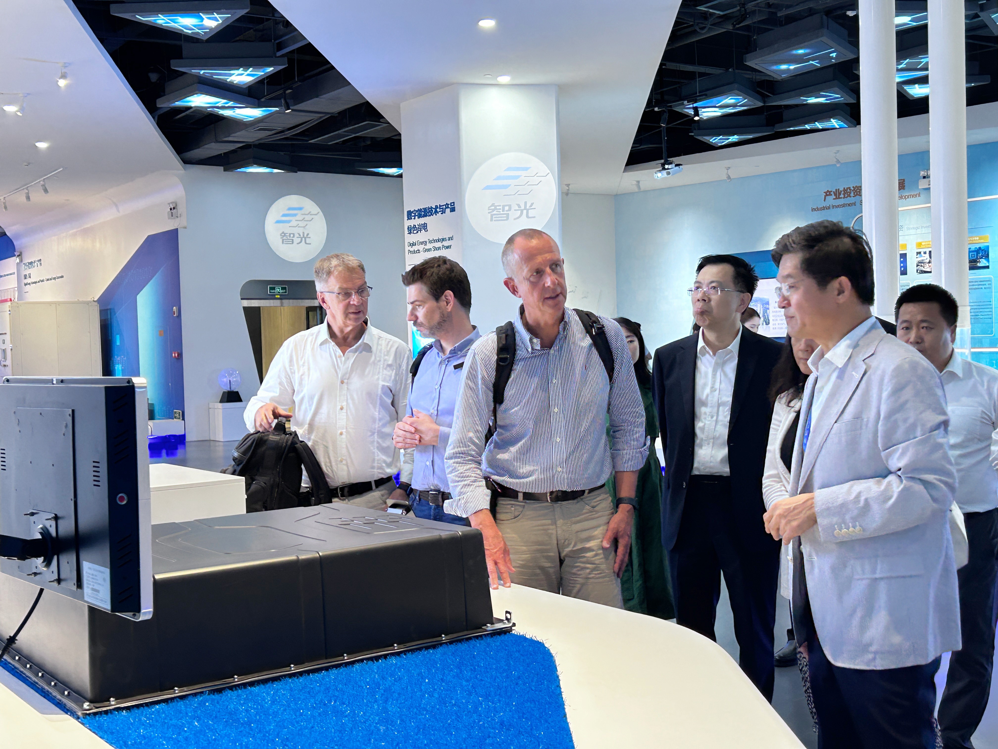 訪問期間,代表團參觀了智光企業展廳、綜合能源大數據智慧運營中心及儲能工廠,對智光在技術創新和產業升級方面的雄厚實力給予了高度評價。座談會上,三方進行技術交流及業務洽談,就各自的技術優勢、市場定位和發展戰略進行了深入探討。